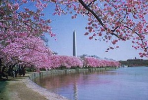 Cherry blossoms are typically associated with trees of the genus Prunus, and in particular, Prunus serrulata. The trees seen in this shot of the tidal basin are descendant of a goodwill gift from Tokyo to the City of Washington in 1912. It is unclear if the Japanese government was unhappy with the presentation of these trees, or if a combination of various other circumstances led to an unfortunate series of events initiated in 1941 by Japan.