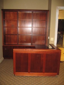 A craftsman-style Makore credenza and desk, custom made by Y B Normal Custom Woodworking. There are a lot of interesting custom jobs in their catalogue.