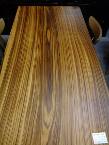 Now that’s a table! Zebrawood tends to be quite expensive, because quarter-sawn sections are required to achieve its distinctive look.