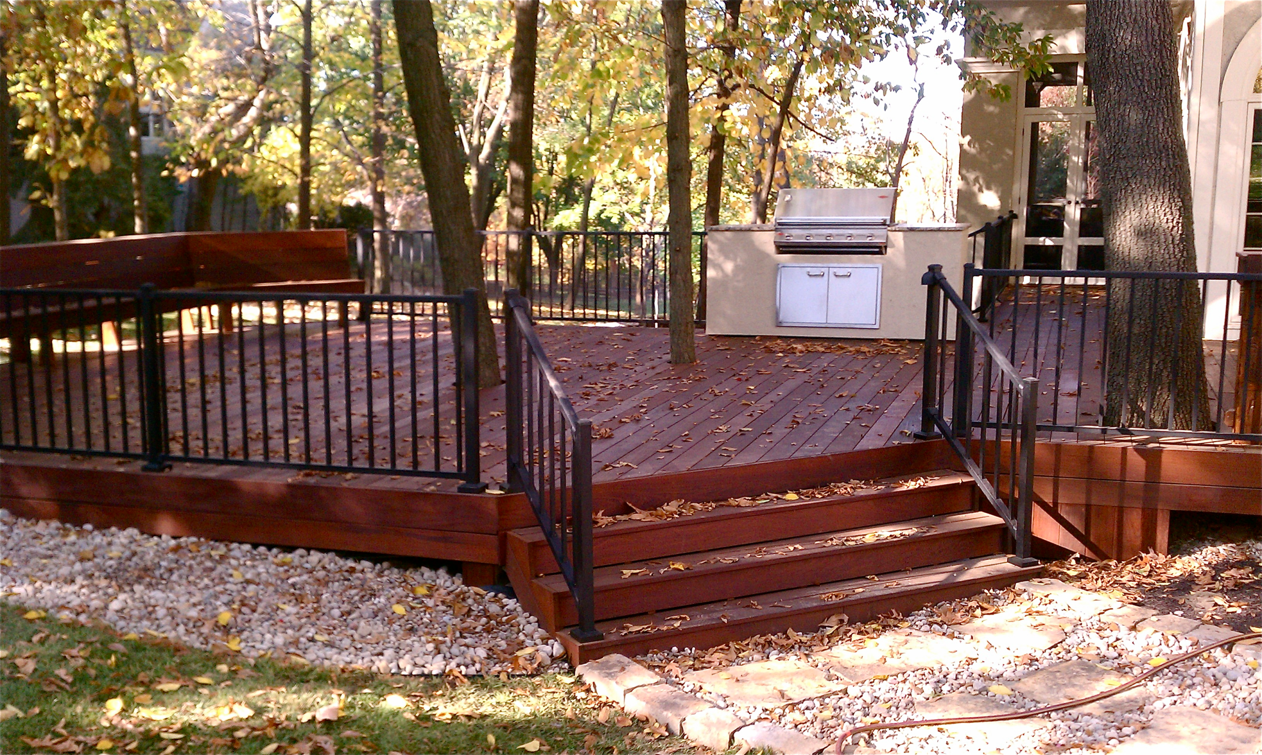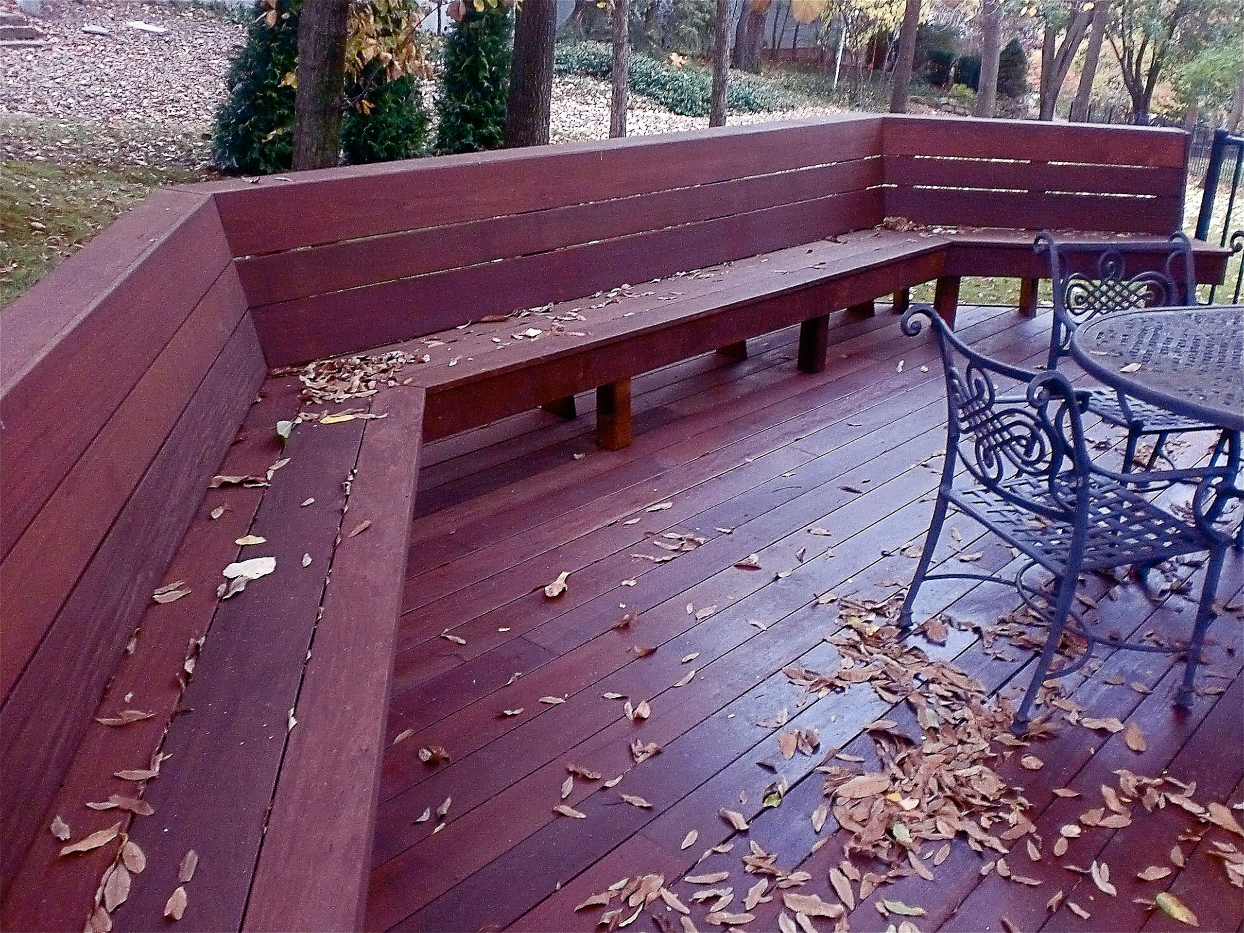 It’s oily, it’s hard to glue, it’s hard to cut, and it will break every bit in your set. That said, once installed it’s awfully hard to beat. Many designers, builders, and homeowners regard this as an investment grade wood due to its ability to resist decay by weather or pest. Do not use compressed air tools without wearing goggles, gloves, thick clothing, in an otherwise empty room, as the fasteners will be airborne and elsewhere once you attempt to nail this material. Pre-drill, then screw, and it holds remarkably well. Hidden fastening systems were made for lumbers such as Ipe and Cumaru. Use air dried Ipe for outdoor projects. It will turn to a silver gray with age. A finisher with UV blocking will retain the beautiful brown color.